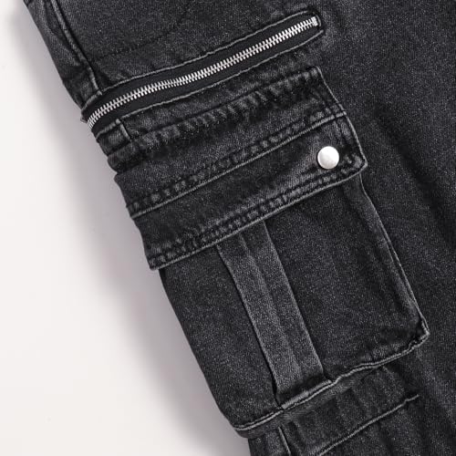 Men Baggy Cargo Loose Fit Multiple Pockets Denim Jeans Streetwear Wide Leg Denim Pants 5
