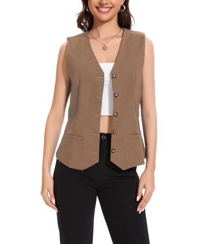 MINTLIMIT Vest for Women V Neck Lightweight Work Cropped Sleeveless Jacket Linen Vests Women 4