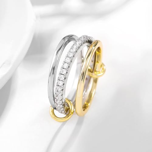 RINEY&KY 18K Gold Plated Moissanite Stackable Rings for Women, Two Tone Interlocking 3 Ring Set S925 Silver Stacking Ring Non Tarnish Dainty Everyday Statement Lab Diamond Eternity Wedding Band Certified Moissanite Gemstone Size 5-10US 1