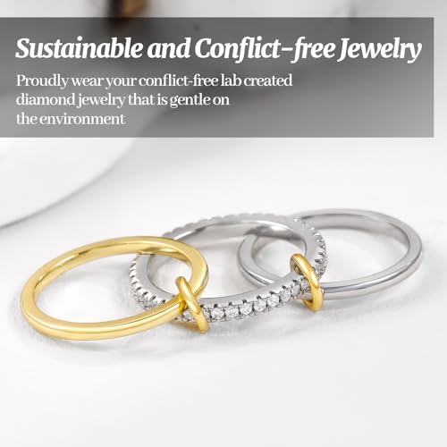 RINEY&KY 18K Gold Plated Moissanite Stackable Rings for Women, Two Tone Interlocking 3 Ring Set S925 Silver Stacking Ring Non Tarnish Dainty Everyday Statement Lab Diamond Eternity Wedding Band Certified Moissanite Gemstone Size 5-10US 4