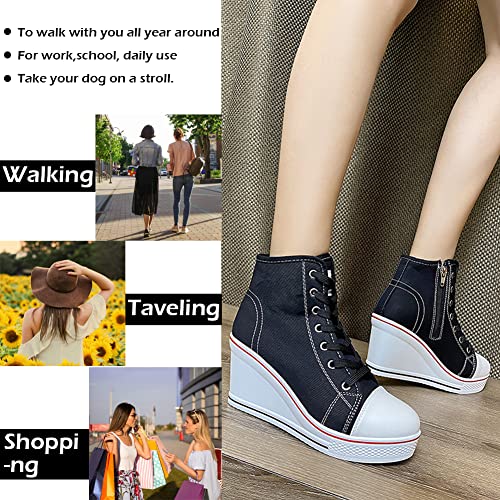 Womens Lace Up Heel Sneakers, Platform Wedge Sneakers Ankle Booties with Zipper Casual Canvas Fashion Sneaker for Girls 6