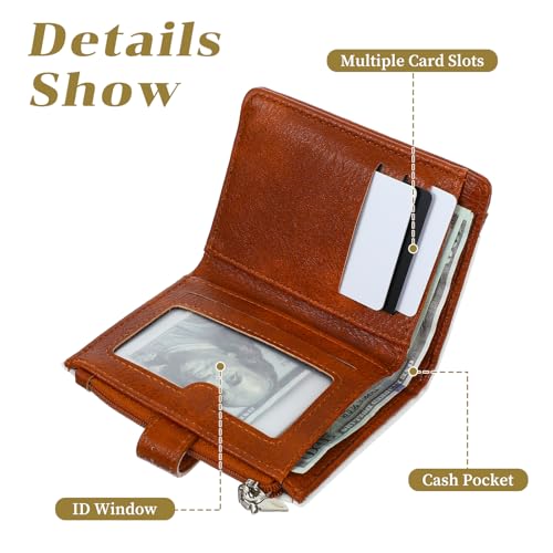 More information about Slim RFID Blocking Leather Wallet for Women - Bifold Credit Card Holder with Zipper Coin Pocket & ID Window, Compact Travel Purse for Ladies, Multi-Card Organizer Clutch