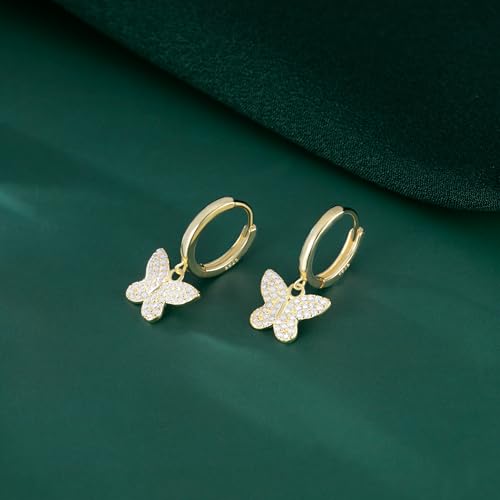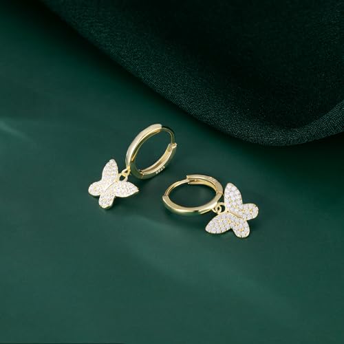 • Design: These hoop earrings feature a cute butterfly inlaid with high grade shiny CZ Stones. They are minimal and stylish. These dainty earrings are perfect for any occasion