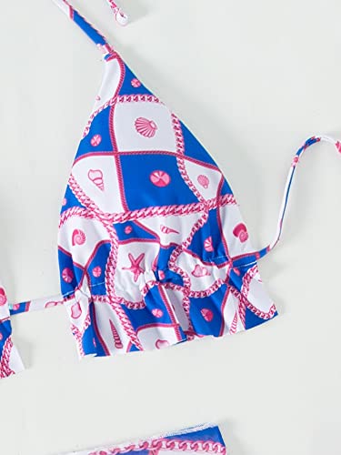 Milumia Women's 3 Piece Swimsuits Tie Back Frill Trim Halter Triangle Bikini Set with Beach Mini Skirt 3