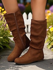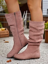 More information about Women's Pink Mid Calf Flat Boots with Side Zipper Casual Slouch Boots for Autumn Days, Country Homes and Outdoor Errands