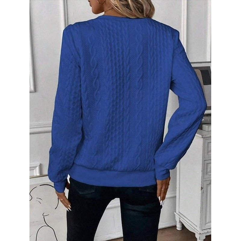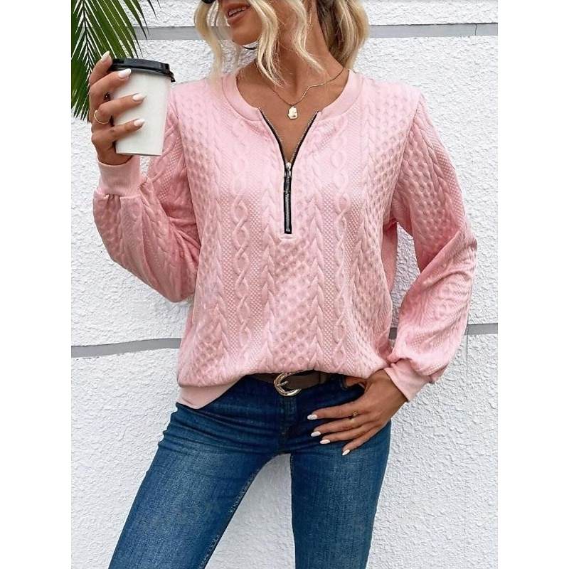 HOT ! Women's Sweatshirt Elegant Modern Plain Work Crew Neck Zipper Loose Fit Long Sleeve Black White Pink Gray Spring Fall