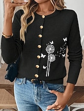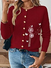More information about Women's Cardigan Elegant Vintage Daily Floral Graphic Ribbed Crew Neck Buttons Knitted Long Sleeve Regular Tops Knit Outdoor Home Work Black Red Fall Winter