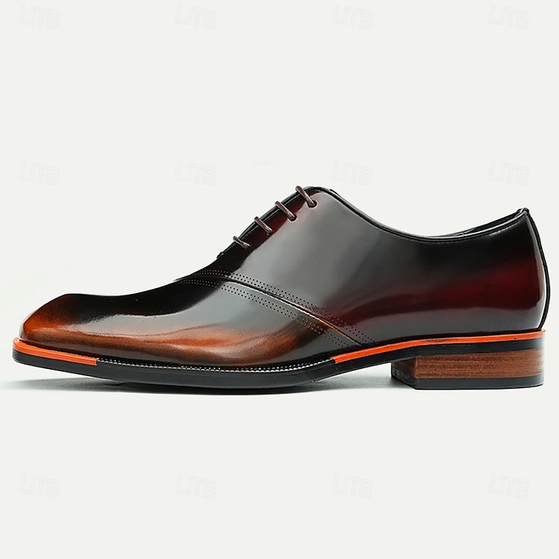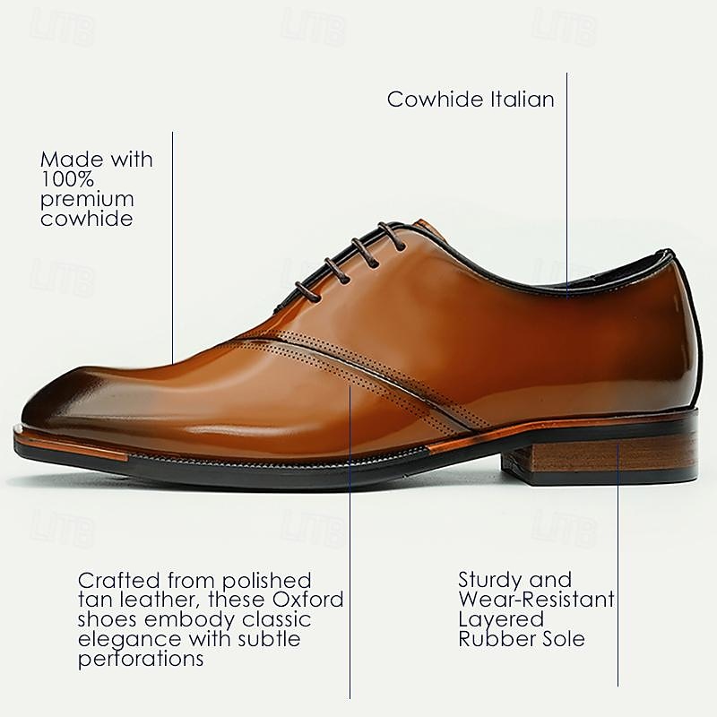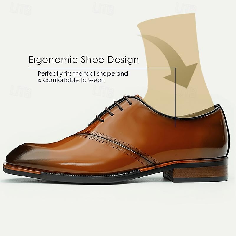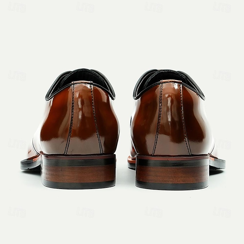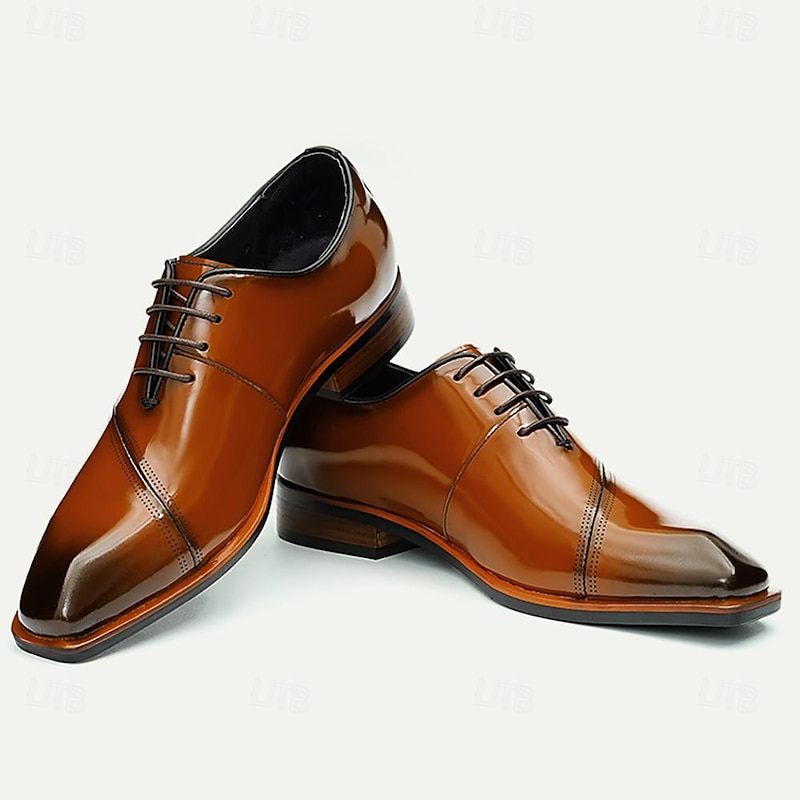 HOT ! Elegant Men's Cognac Patent Leather Oxford Shoes with Lace-Up Detail - Perfect for Formal Occasions