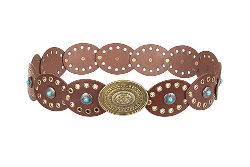 Women Disc-Belt Western-Leather-Belts - Concho Cowgirl Cowboy Wide Boho Disk Belt Vintage Waist Belts for Dress 5