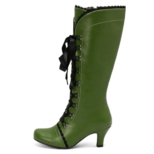 Betastella Womens Lace Up Victorian Boots Chunky Low Kitten Heel Knee High Vintage Boots Witch Boots 7