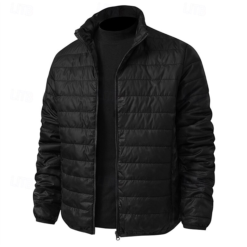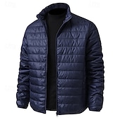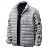 More information about Men's Winter Coat Puffer Jacket Pocket Polyster Vacation Daily Wear Date Regular Fashion Casual Comfortable Thermal Warm Fall Winter Solid / Plain Color Black Light Grey Dark Blue Puffer Jacket