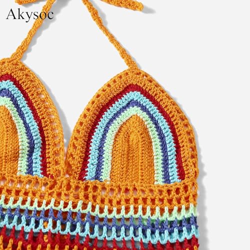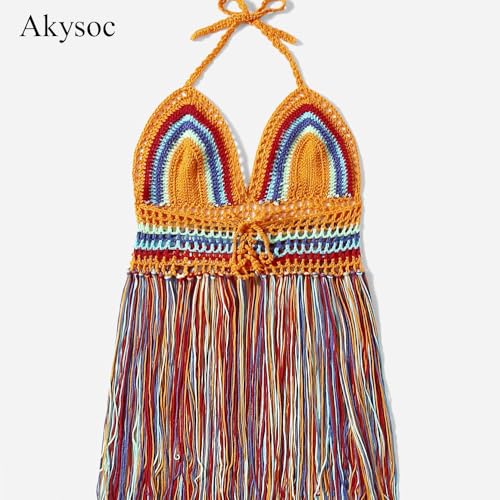 • ❤FRESH & COOL DESIGN: Handmade, knitted, Deep V neck, backless, Halter tie, adjustable back tie , long tassel. The color design of our tassel beach cover up dress is bright, which best fits the beach. The hollow out and tassel design would gleamingly show your sexy & curvy body. Get our Handmade Crochet Tassel cover up, you would be the most attractive one