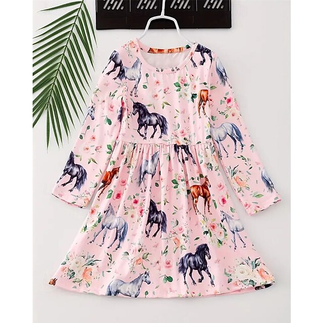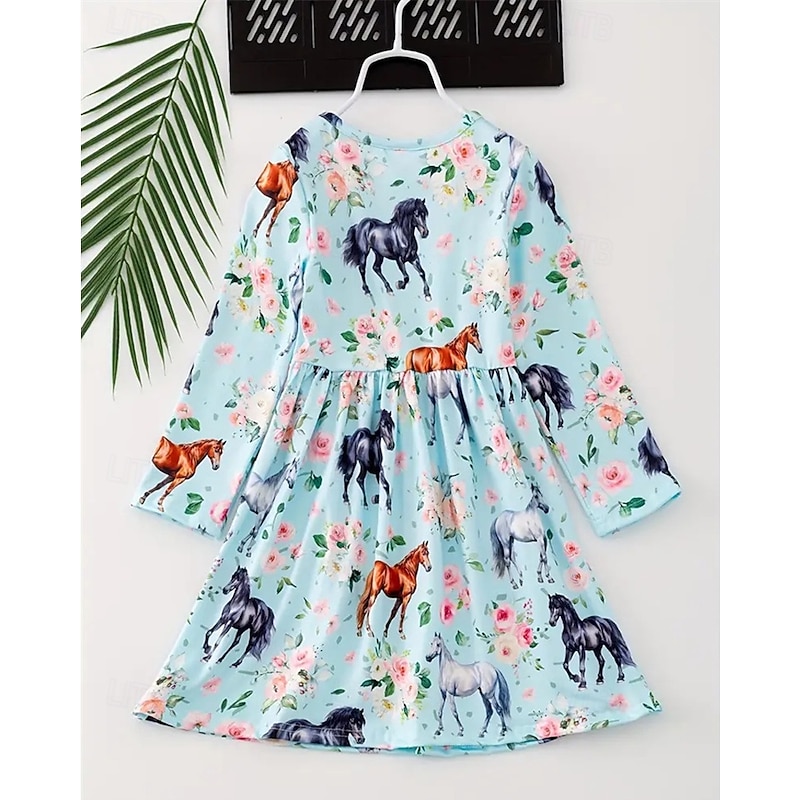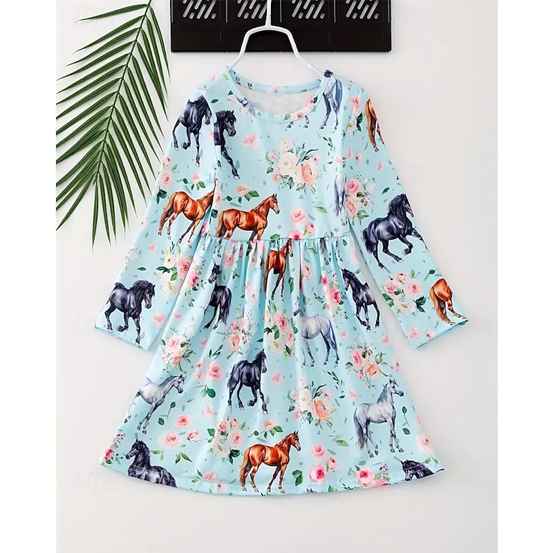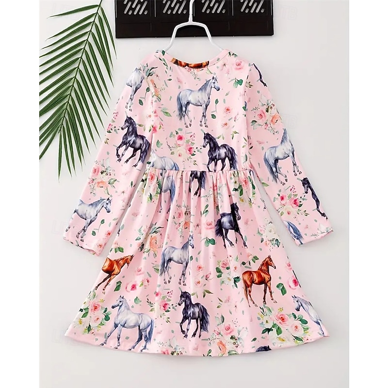 More information about Girls' 3D Graphic Horse Dress Long Sleeve Summer Spring Vacation Daily Holiday Beautiful Sweet Kids 4-12 Years Casual Dress A Line Dress Knee-length Regular Fit