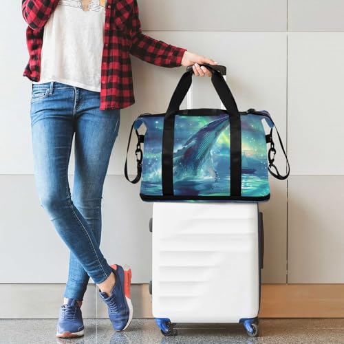 Travel Duffel Gym Sports Luggage Bag Expandable Large Capacity Blue Whale Aurora Sports Bag for Women and Men 6