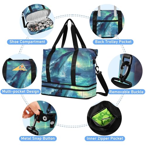 Travel Duffel Gym Sports Luggage Bag Expandable Large Capacity Blue Whale Aurora Sports Bag for Women and Men 5