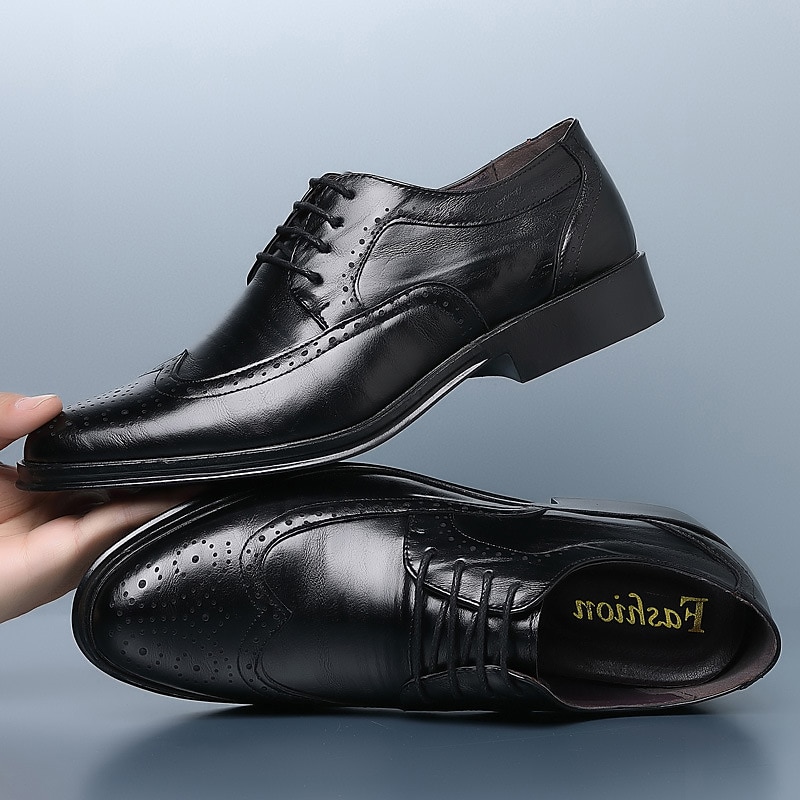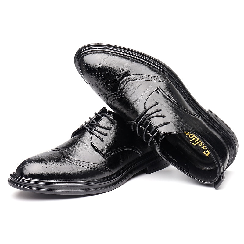 HOT ! Men's Brown Faux Leather Brogue Dress Shoes – Classic Wingtip Oxford Design for Business, Formal Occasions, and Office Wear