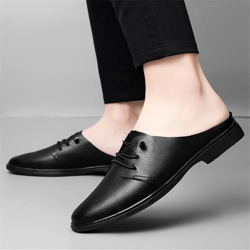 Men's Loafers Backless Genuine Leather Mules Horse Buckle Shoes Fashion Formal Wear Casual Backless Dress Slippers 5