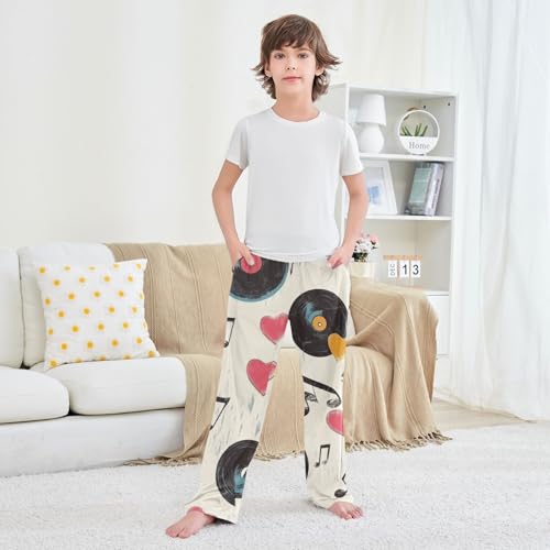 ZZXXB Record Music Note Boys Long Pants Soft Trousers Elastic Waist Kids Lounge Bottoms with Pockets S-XL 1