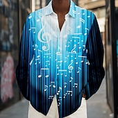 HOT ! Men's Boardmasters Ombre Musical Notes Shirt Button Up Shirt Long Sleeve Casual Traveling Summer Spring Fall Turndown Pocket Blue