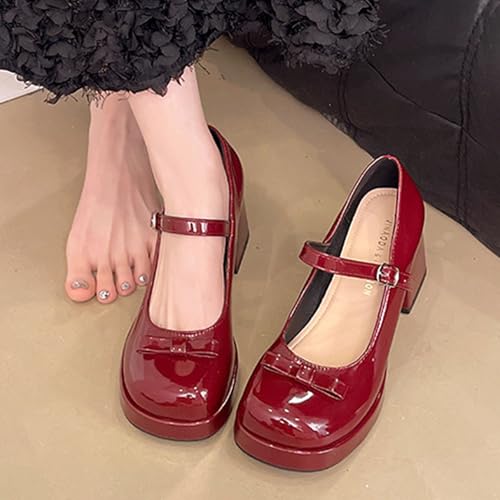 HOT ! Women's Patent Leather Chunky High Heel Mary Janes with Adjustable Strap Cute Bow Round Toe Comfortable Platform Block Heel Non Slip Goth Dress Pumps for Work Party