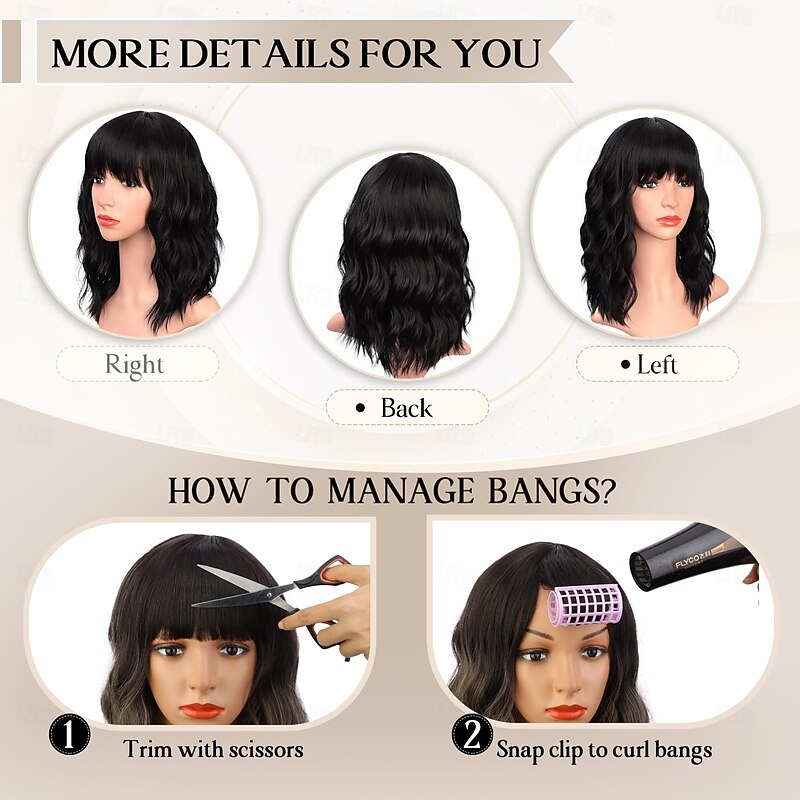 $18.99 - Wigs with Bangs for Women Synthetic Curly Bob Wig for Girl Natural Looking Wavy Wigs 2025. Shop for cheap Synthetic Trendy Wigs online? Buy at lightinthebox.com on sale today!