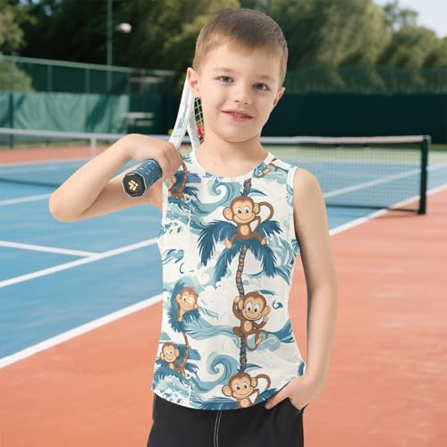 Boys Tank Top Shirts Monkey Ocean Waves Paml Tree Sleeveless T-Shirts Crew Neck for Kids Clothing Children 5