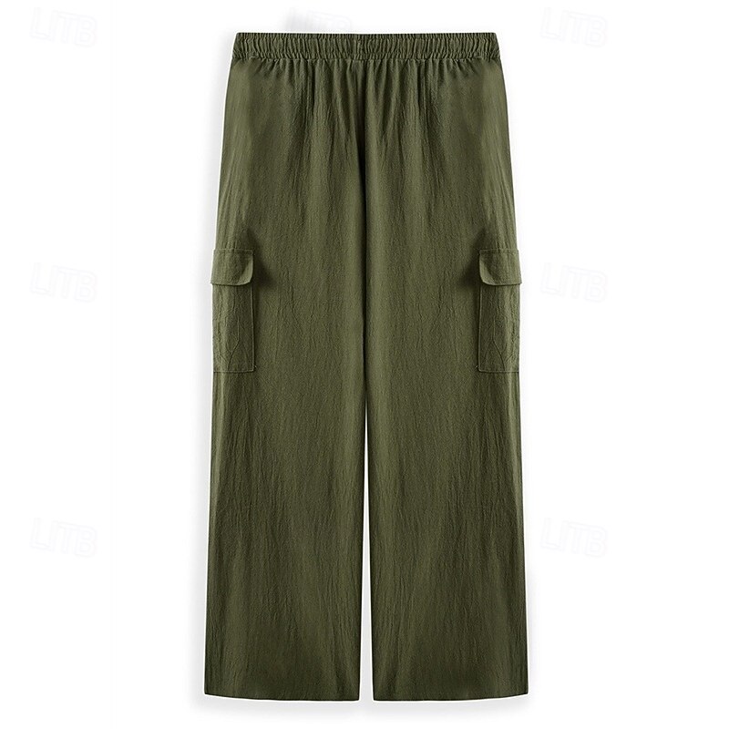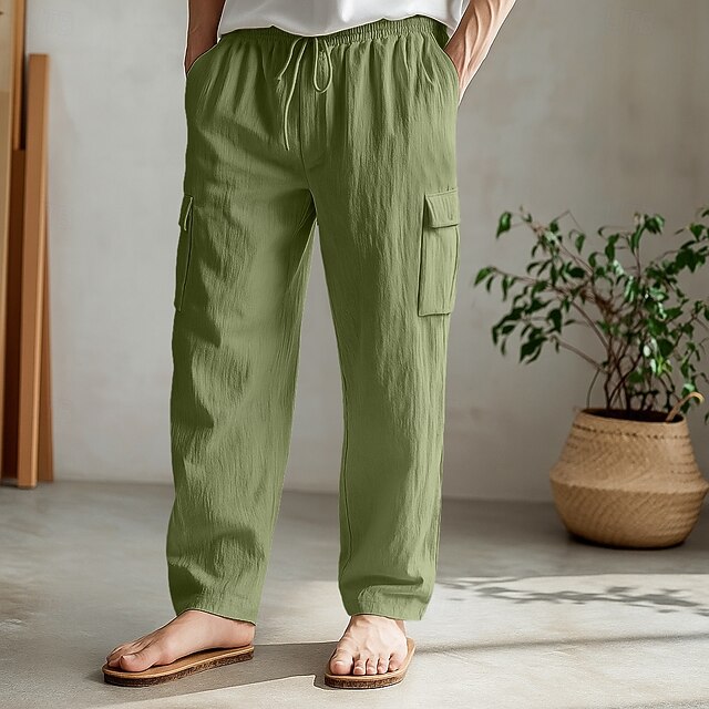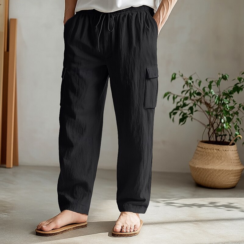 More information about Men's Cargo Pants Trousers Summer Pants Beach Pants Drawstring Elastic Waist Multi Pocket Plain Comfort Soft Full Length Outdoor Daily Holiday Vacation Fashion Loose Fit Black White Inelastic
