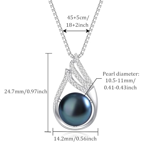 Black/White/Gold/Grey Pearl Necklace for Women, Sterling Silver Pendant Necklace, Handpicked Genuine Saltwater Cultured Pearls, Womens Chain 18+2 Inch Adjustable, Jewelry Gifts for Mother Wife 4