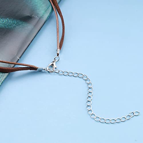 Boho Layered Suede Choker Necklace - Brown Velvet Gothic Leather Silver Beaded Chain Retro Jewelry for Women 5