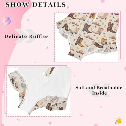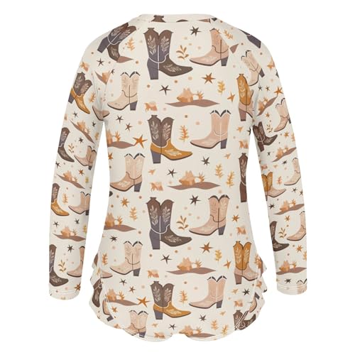 CaTaKu Girls One Piece Swimsuit Cowgirl Boots Brown Toddler Bathing Suit Long Sleeve UPF 50+ Rash Guard Swimwear 3-12Y 3