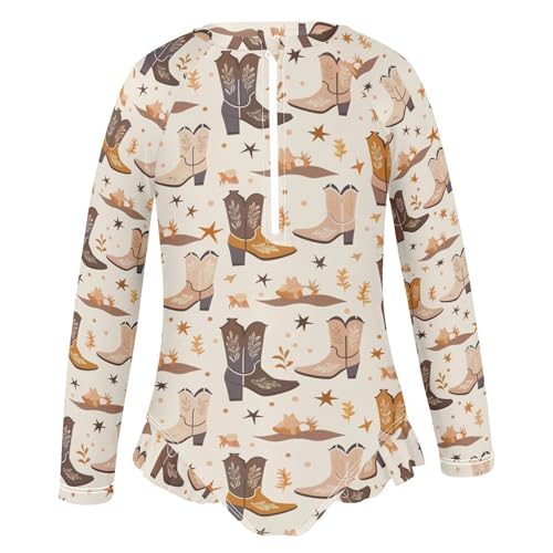 CaTaKu Girls One Piece Swimsuit Cowgirl Boots Brown Toddler Bathing Suit Long Sleeve UPF 50+ Rash Guard Swimwear 3-12Y 6