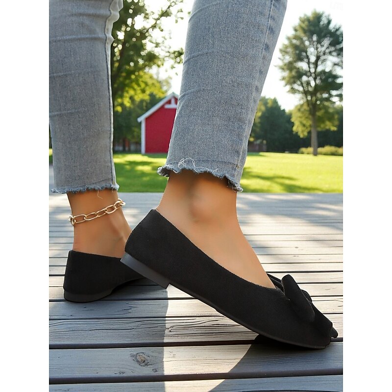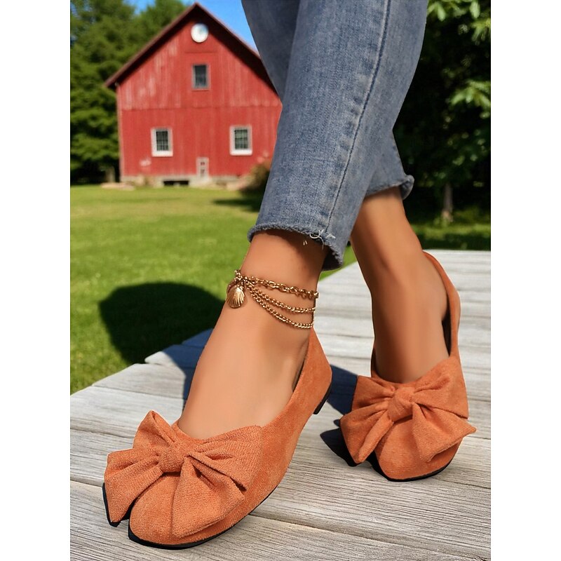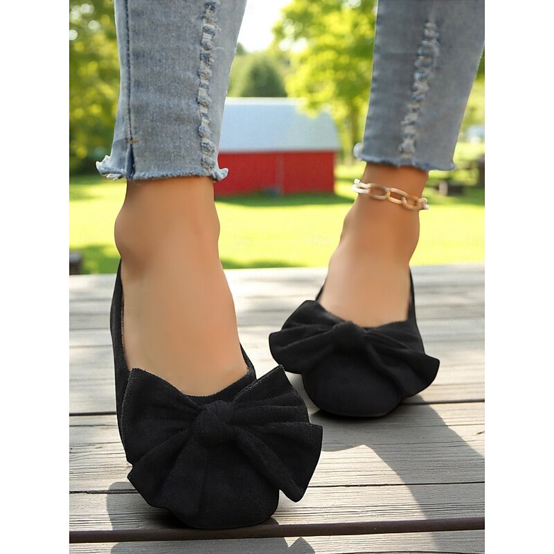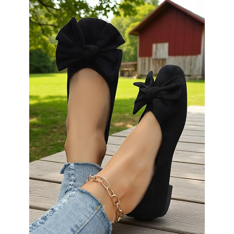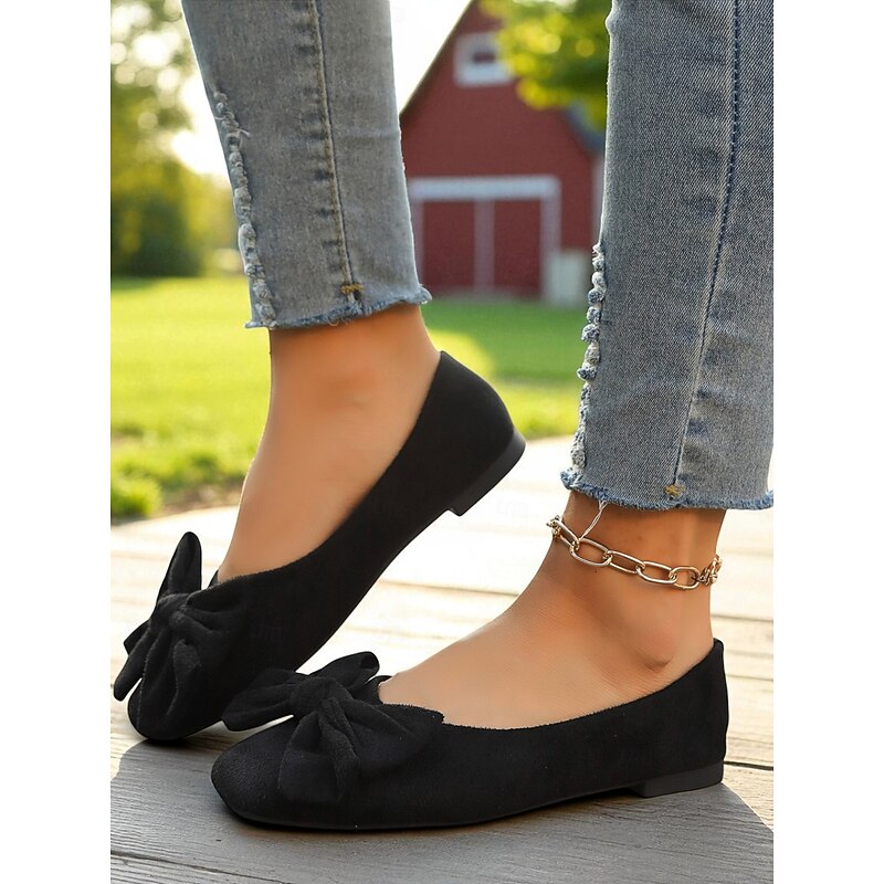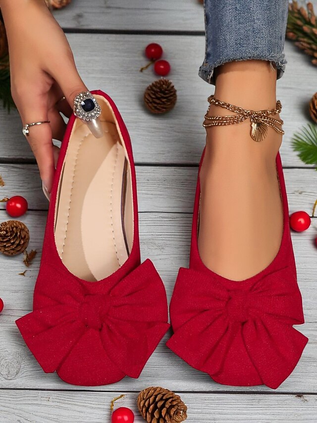 Women's Red Ballet Flats with Large Bow – Elegant Square Toe Dress Shoes for Parties, Christmas and Everyday Outfits 24