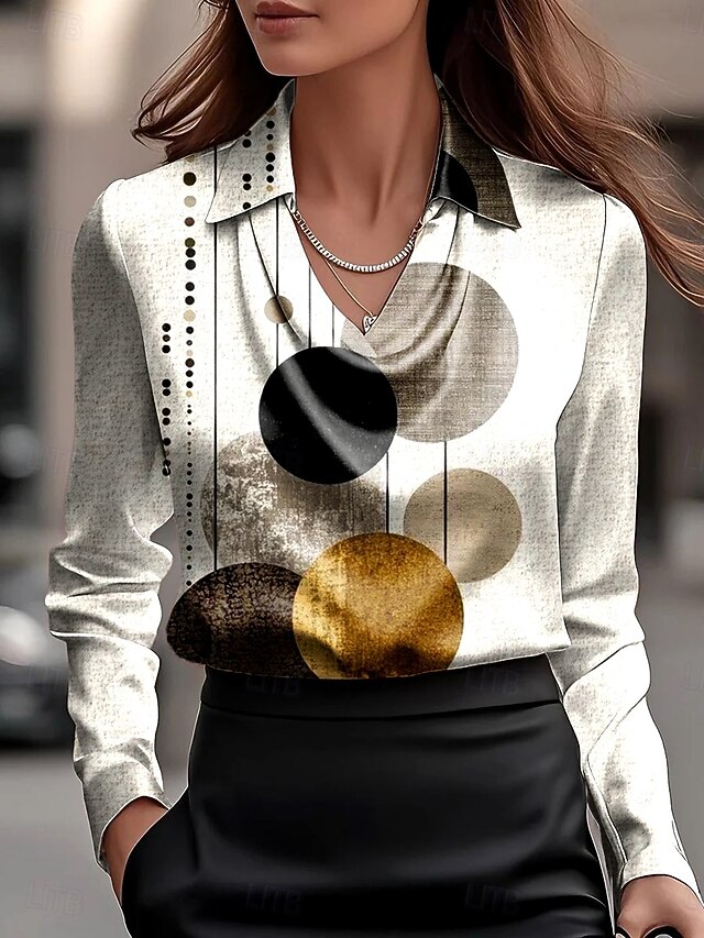 More information about Women's Shirt Ombre Graphic Geometric Elegant Stylish Modern Long Sleeve Cowl Neck Regular Tops Work Party Evening Wear Daily Ruched Draped Dusty Blue Beige Fall Winter