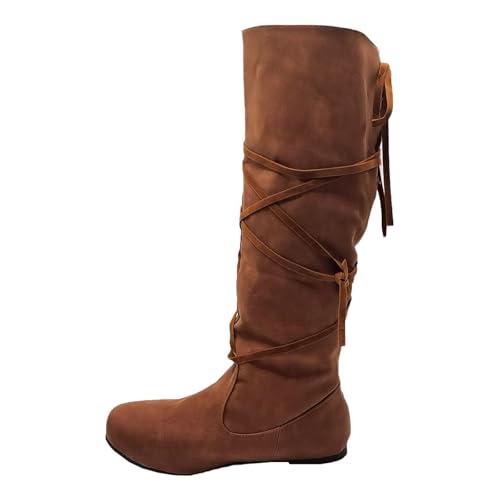 Women‘s Renaissance Boots Medieval Cosplay Halloween Vintage Stage Pirate Viking Tied Boots Shoes