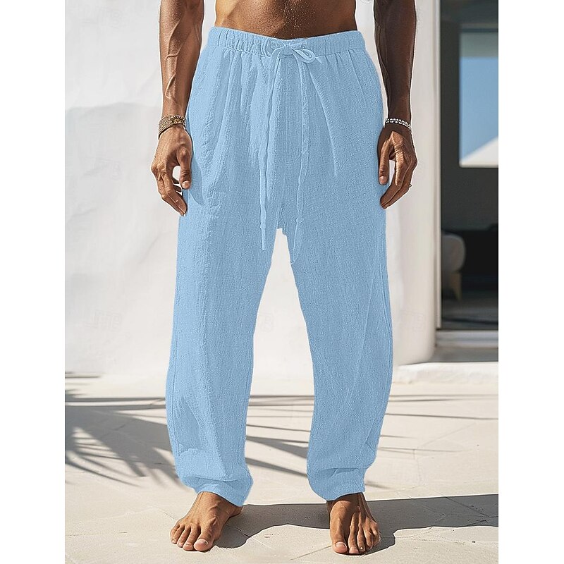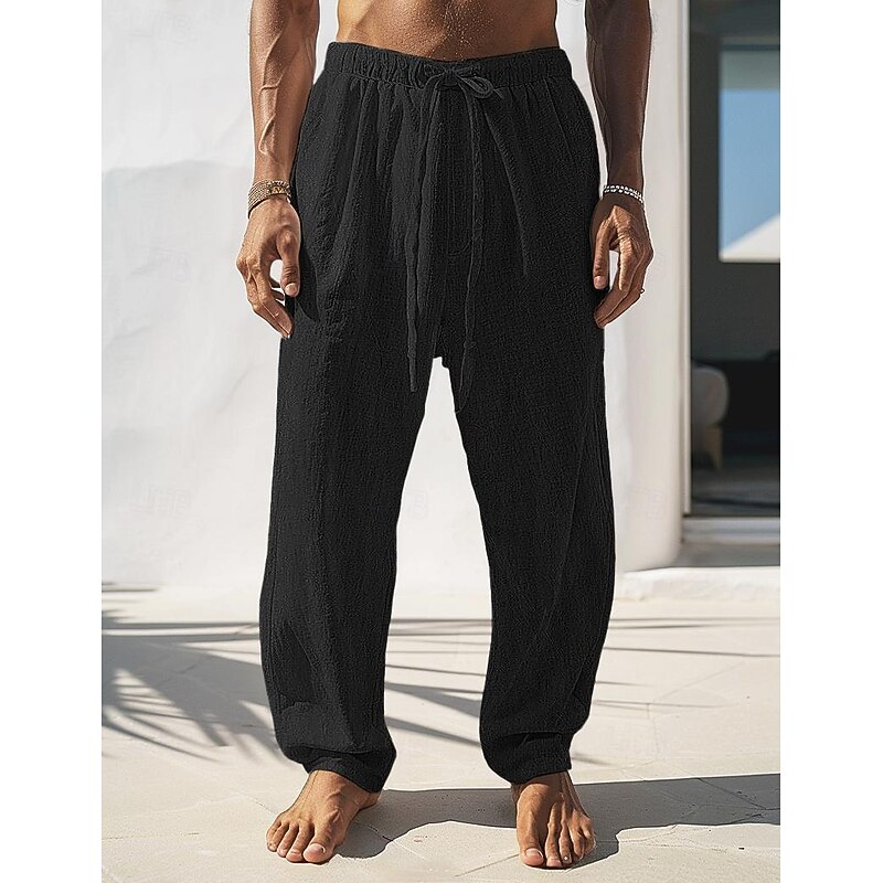 More information about Men's Linen Pants Trousers Summer Pants Front Pocket Straight Leg Plain Comfort Breathable Full Length Casual Daily Holiday Fashion Basic Black White