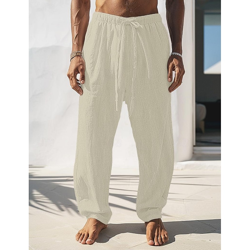 Men's Linen Pants Trousers Summer Pants Front Pocket Straight Leg Plain Comfort Breathable Full Length Casual Daily Holiday Fashion Basic Black White 11