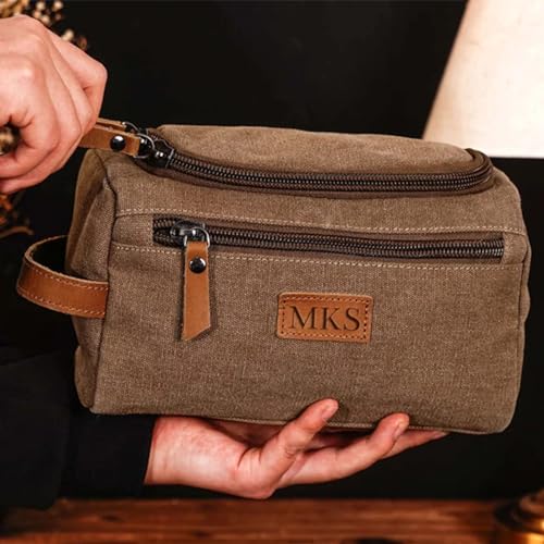 HOT ! Custom Mens Travel Toiletry Bag, Personalized Laser Engraved Canvas Shaving Kit Personalized Gift for Valentine's Day, Father's Day, Groomsman Gifts
