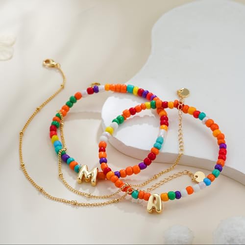 Colorful Initial Bracelets for Women Girls - 14K Gold Plated Initial Letter Daint A-Z Charm Bracelet Summer Jewelry Teen Girl Gifts for Teen Kids 7