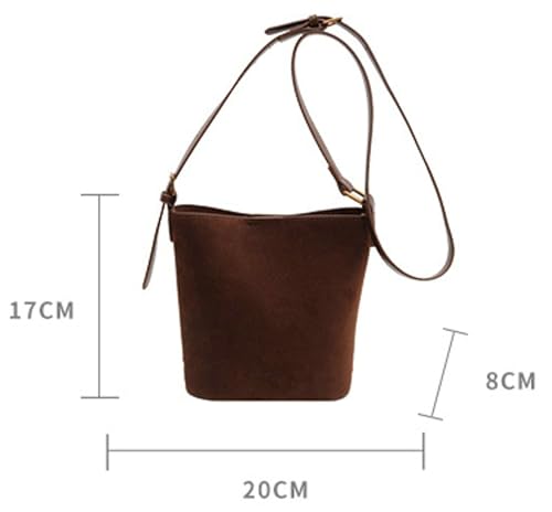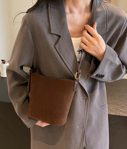 Suede Bucket Bag for Women Vintage Leather Shoulder Bag Tote Purse Minimalist Crossbody Handbag with Adjustable Strap