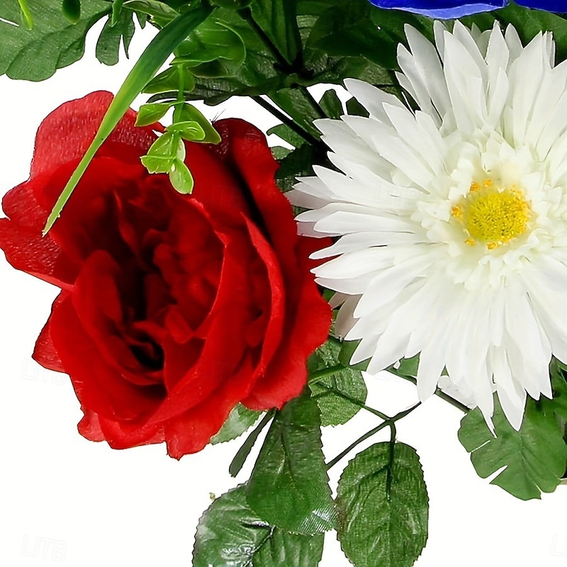 $13.99 - Patriotic Artificial Flowers 4th of July Bouquet Fake Independence Day Red White and Blue Cemetery Flowers with American Flags Roses Daisy for Grave Memorial Day Veterans Decoration 2025. Shop for cheap Independence Day Decoration online? Buy at lightinthebox.com on sale today!
