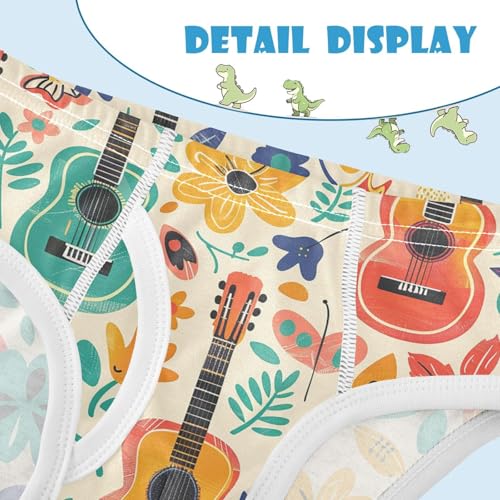 visesunny Boys Cotton Underwear Cartoon Hand Drawn Guitar Flower Printed Toddler Soft Training Briefs Size 2T-8Y for Kids 4