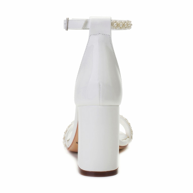 Women's Ivory White Pearl Embellished Ankle Strap Block Heel Sandals - Elegant Bridal, Wedding and Party Shoes 17