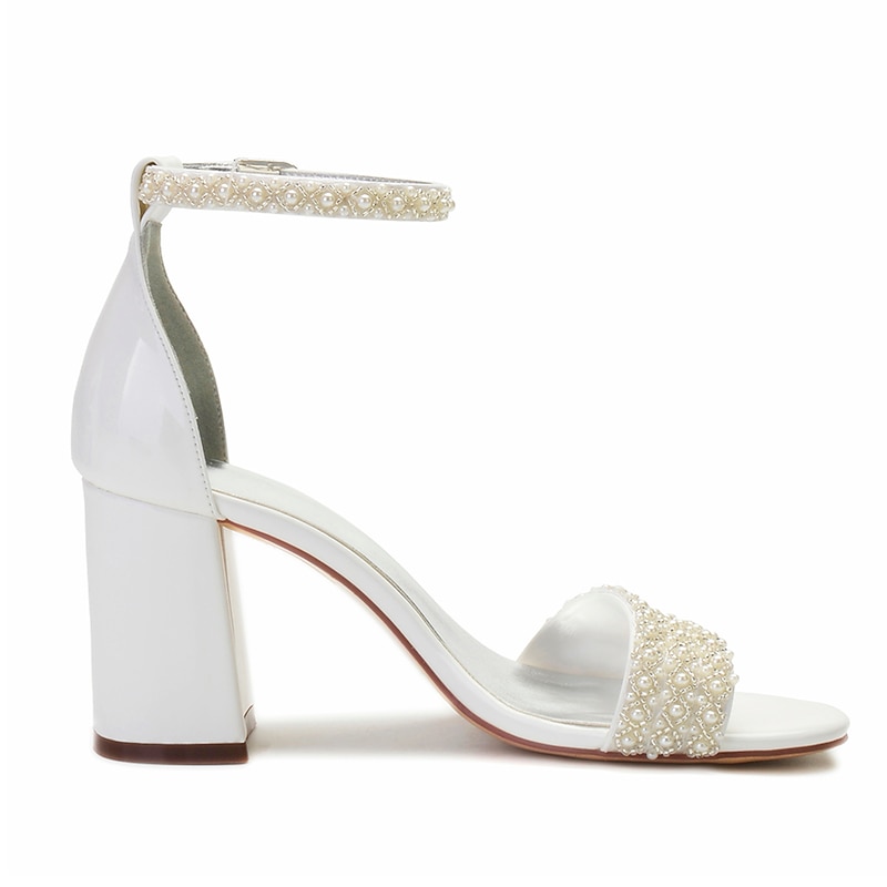 Women's Ivory White Pearl Embellished Ankle Strap Block Heel Sandals - Elegant Bridal, Wedding and Party Shoes 1