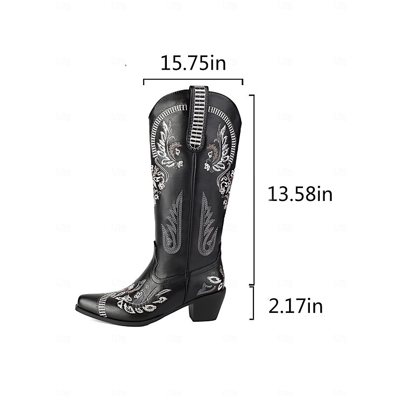Highlights - Premium Faux Leather Upper - Stylish Chunky Heel for added comfort - Chic Pointed Toe design - Durable Rubber Outsole - Stay ahead of the trends with Cowboy Boots in 2025