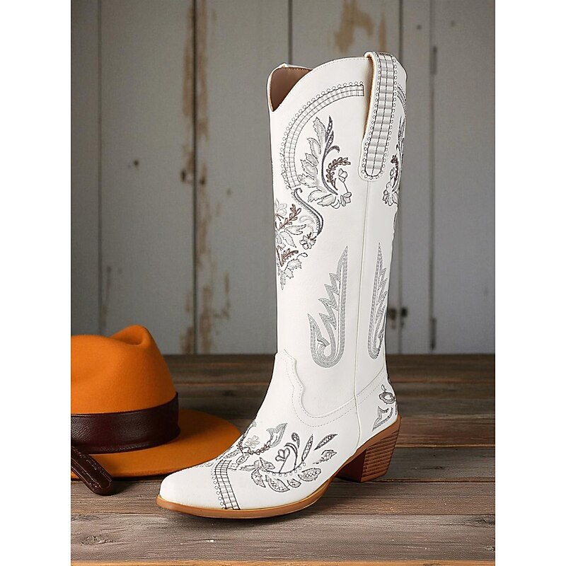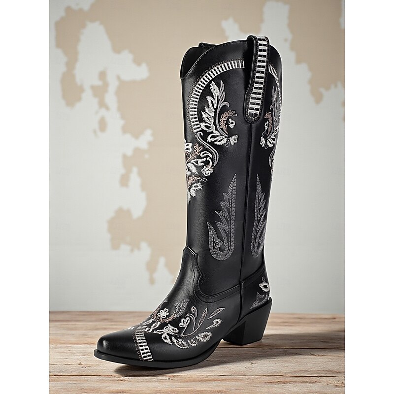 More information about Women's Embroidered Cowboy Mid Calf Boots with Block Heel, Western Riding Style Boots for Parties and Festivals