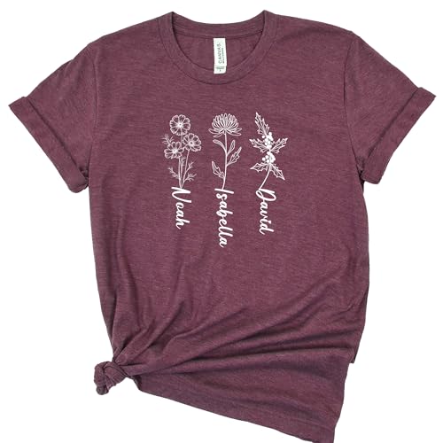 Personalized Mom Grandma Mothers Day Shirt, Customizable Flower Kids Graphic Tees for Mom or Grandpa, Gift for Women Birthday, Christmas, Thanksgiving and Valentine's Day, Shirt with Grandkids Names 1