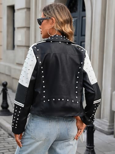 LY VAREY LIN Women's Faux Leather Rivet Studded Jacket Moto PU Short Jacket Punk Fashion Coat 4