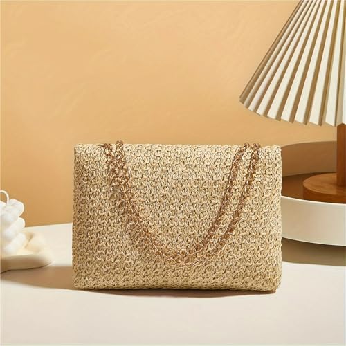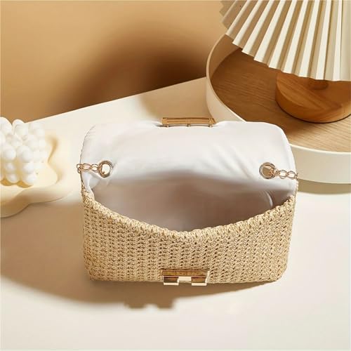 More information about Woven Straw Handwoven Women's Shoulder Bag, Fashion Solid Color Crossbody Purse With Lock Closure