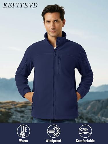 KEFITEVD Men's Tactical Fleece Jackets Full Zip Casual Outdoor Winter heated Jacket Multi Pockets