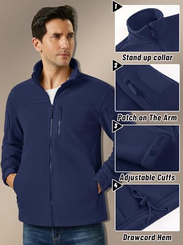 Fabric type: PolyesterCare instructions: Hand Wash OnlyOrigin: ImportedMaterial: Polyester. Warm, relaxing, Windproof, gentle and Breathable.Keep Warm: This men's fleece jacket is made of warm and comfortable fleece fabric, providing you with a warm and comfortable wearing experience in cold weather.Multi Pockets: This tactical jacket has many pockets for storing personal belongings - 2 zippered hand pockets, 1 zipper chest pocket,2 pockets on arms and 1 inner pocket.Features: Adjustable cuffs and hem, stand up collar, patch on the arm, full zip, windproof warm fleece.Occasions: Great for hiking, travel, work, mountaineering, camping, hunting, fishing, tactical, military training, everyday wear and more other outdoor sports.